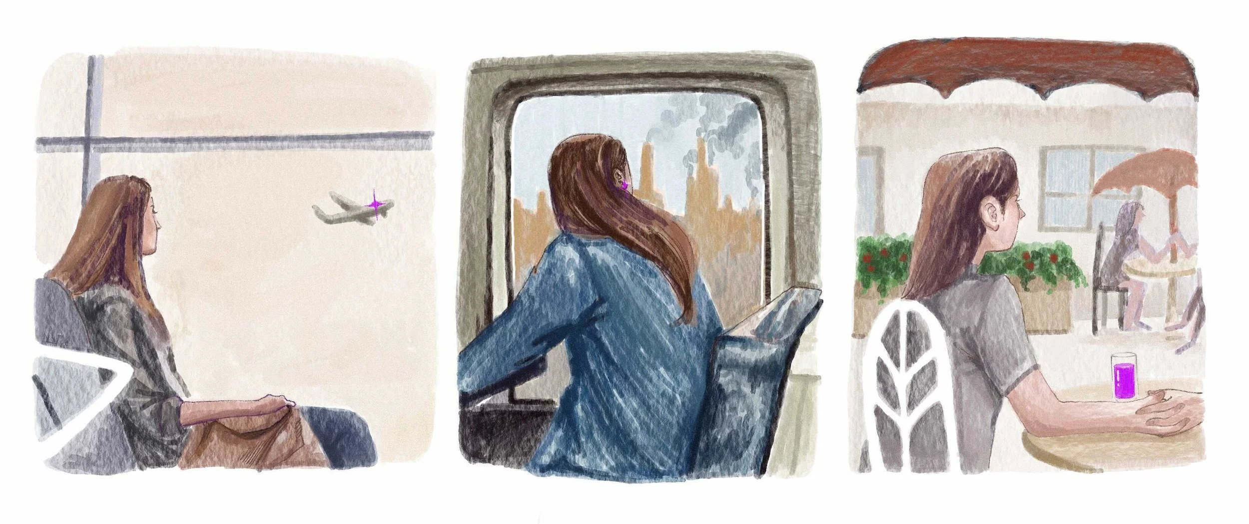 My present life circumstances had led me here this time around. The sun was setting behind fog-like clouds and a binder of Italian vocabulary words sat beside me, but nothing could pull my attention away from the world below me. Homesickness took hold of my diaphragm whenever I meditated on it for too long, and the accompanying struggle to breathe properly only exacerbated the issue. The need to center myself surpassed my need to study. I began to make up stories about the people moving about on the streets.
